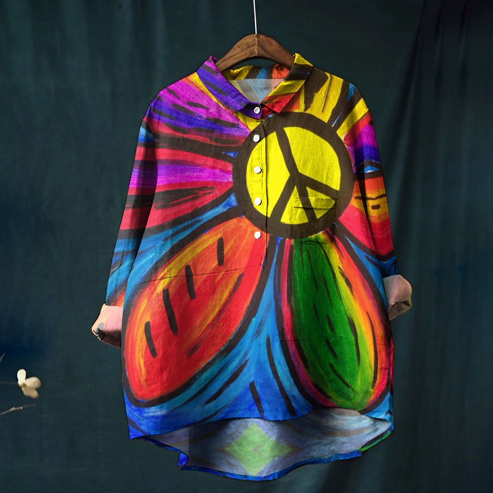 Women's Retro Flowers Printed Casual Long Sleeve Shirt