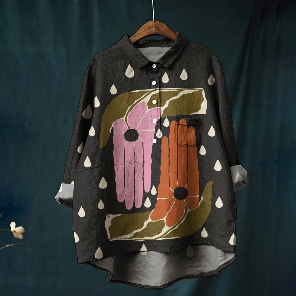Women's Vintage Flower Art Print Casual Cotton Shirt