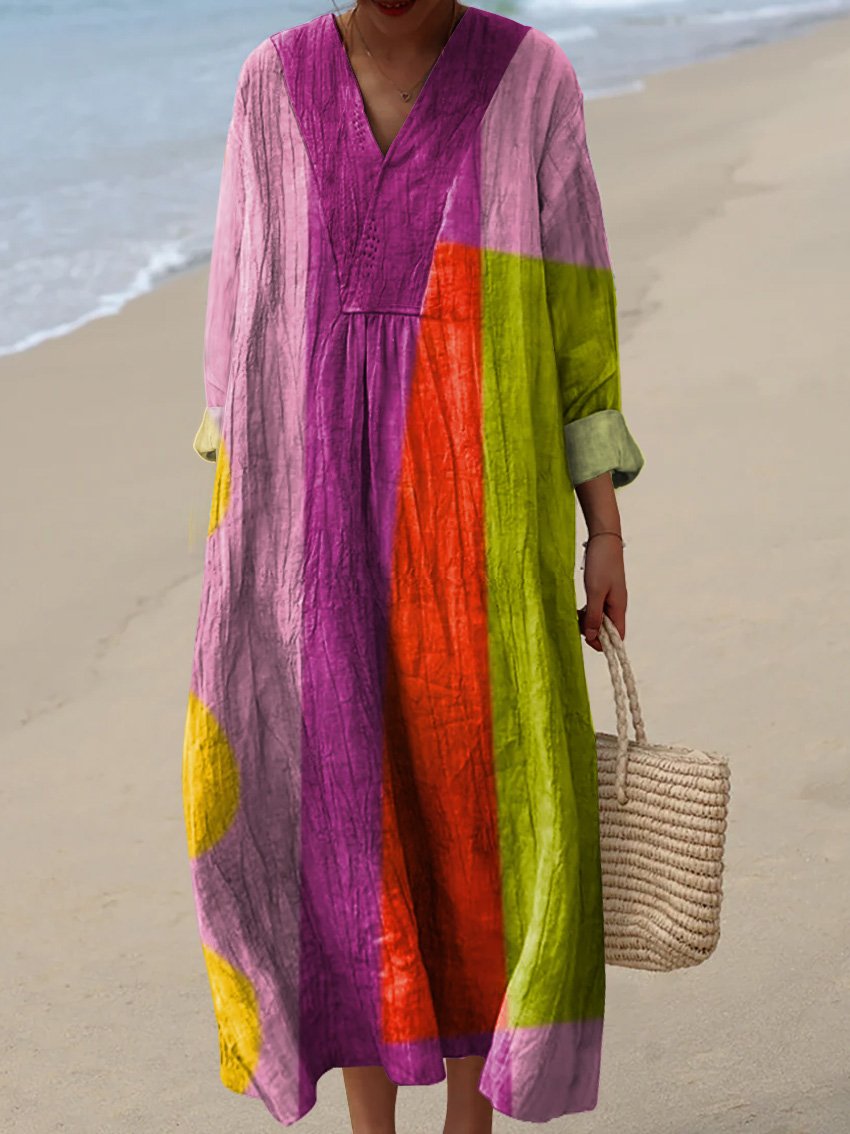 Women's Vintage Abstract Geometric Color Block Art Print Dress