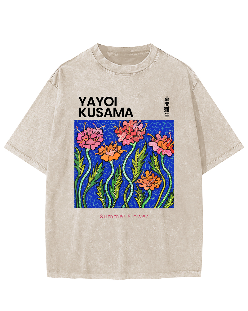 Summer Flower Art Japanese Style Vintage Washed T-shirt