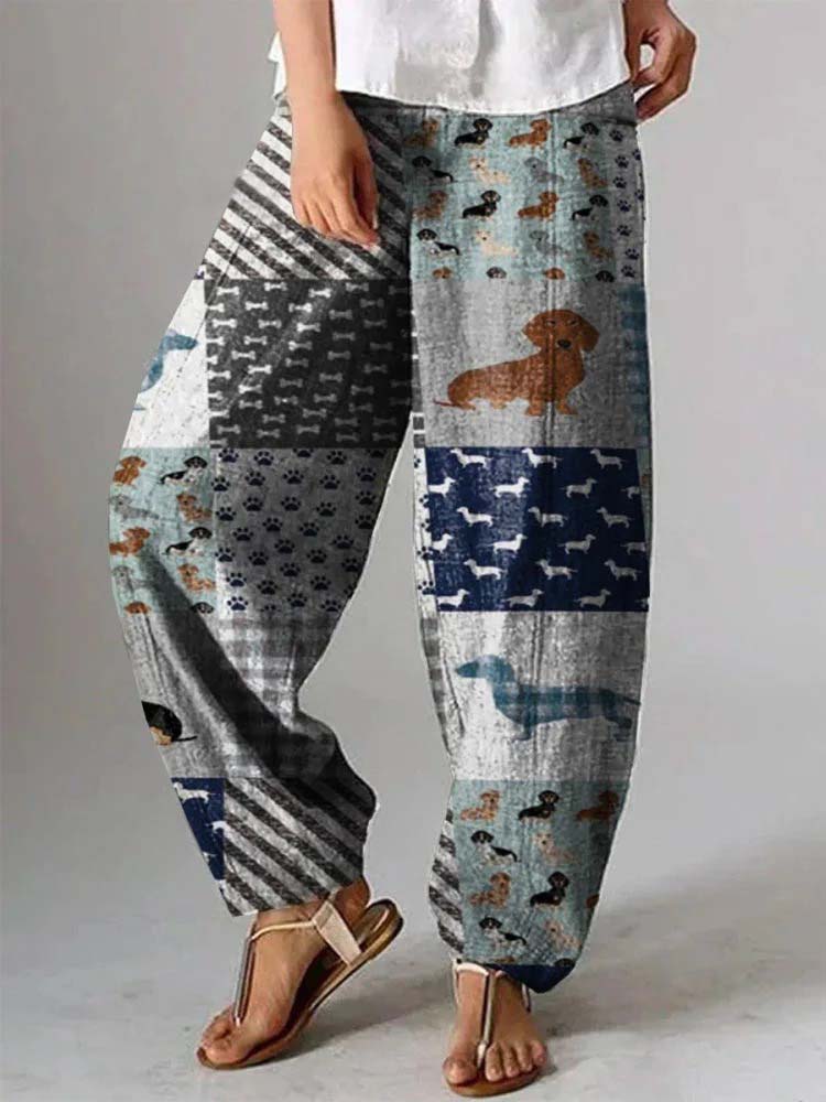 Women's Geometric Cartoon Dog Printed Flowy Dress