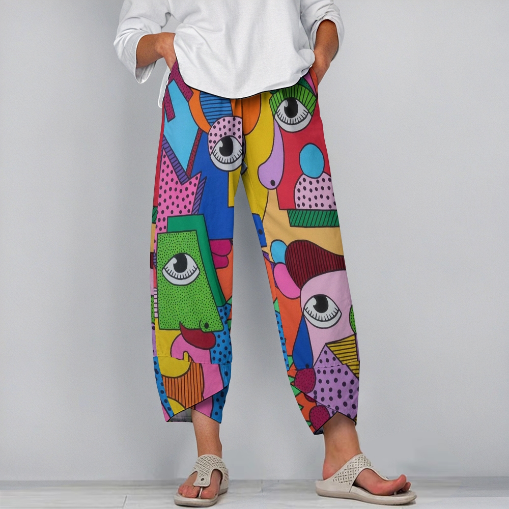Women's Wide Leg Casual Colorful Geometric Stripes Printed Pants
