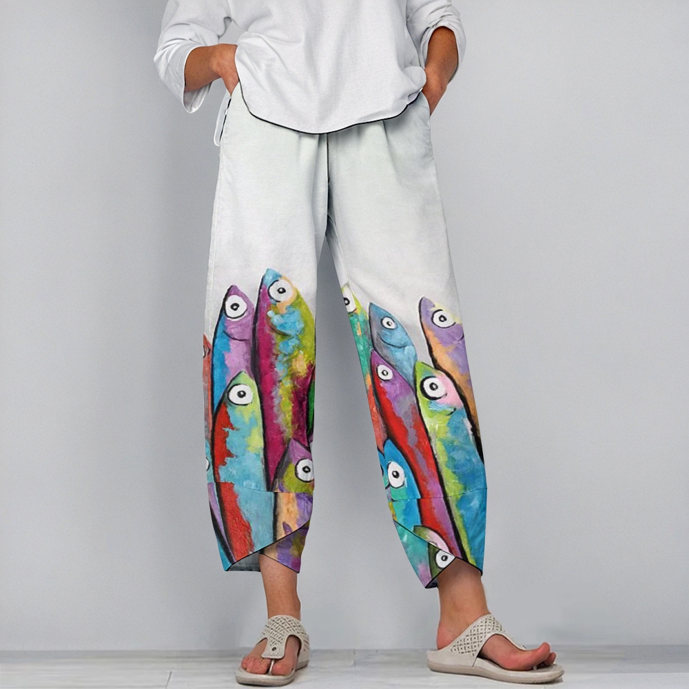 Women's Wide Leg Casual Colorful Fish Printed Pants