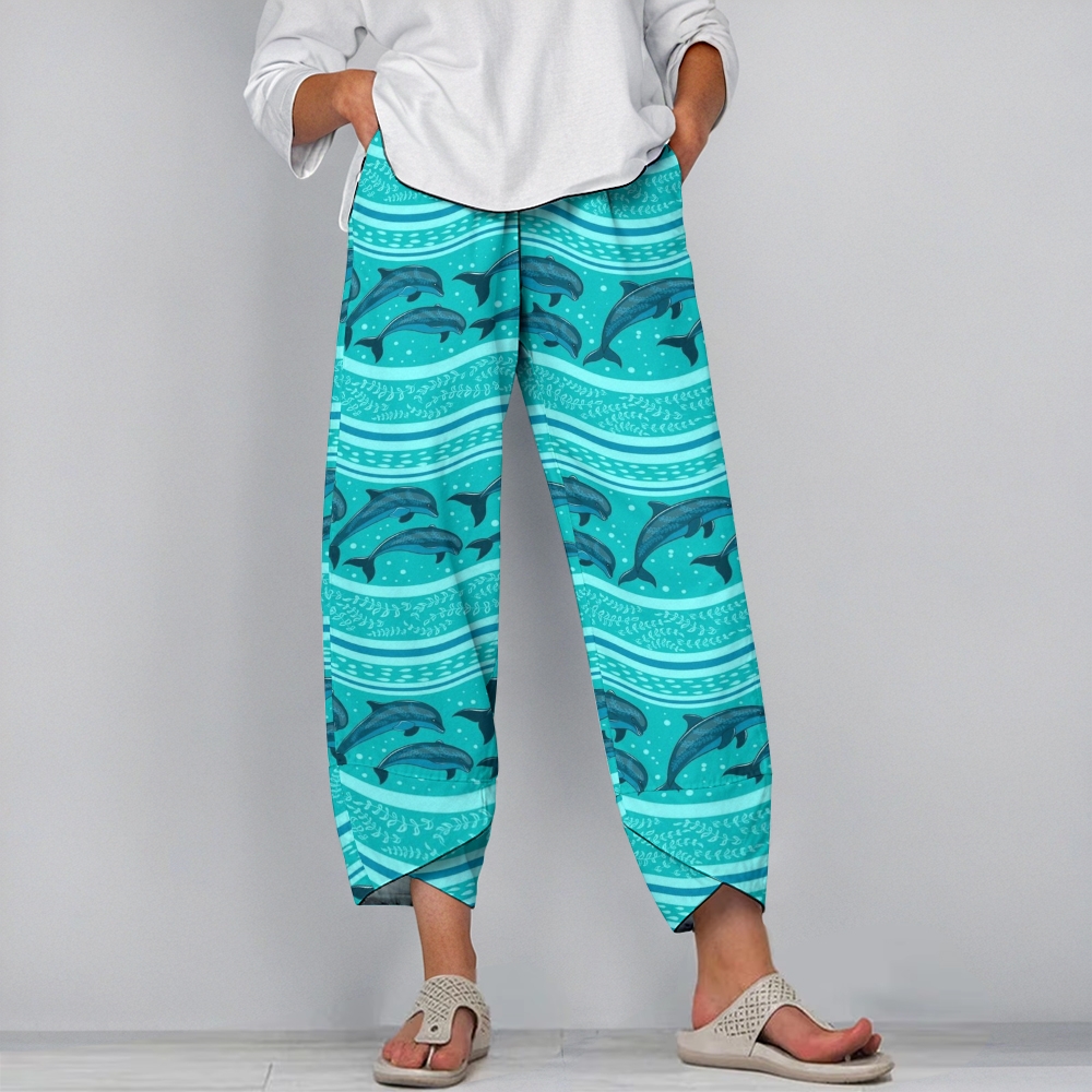 Women's Wide Leg Casual Colorful Fish Printed Pants