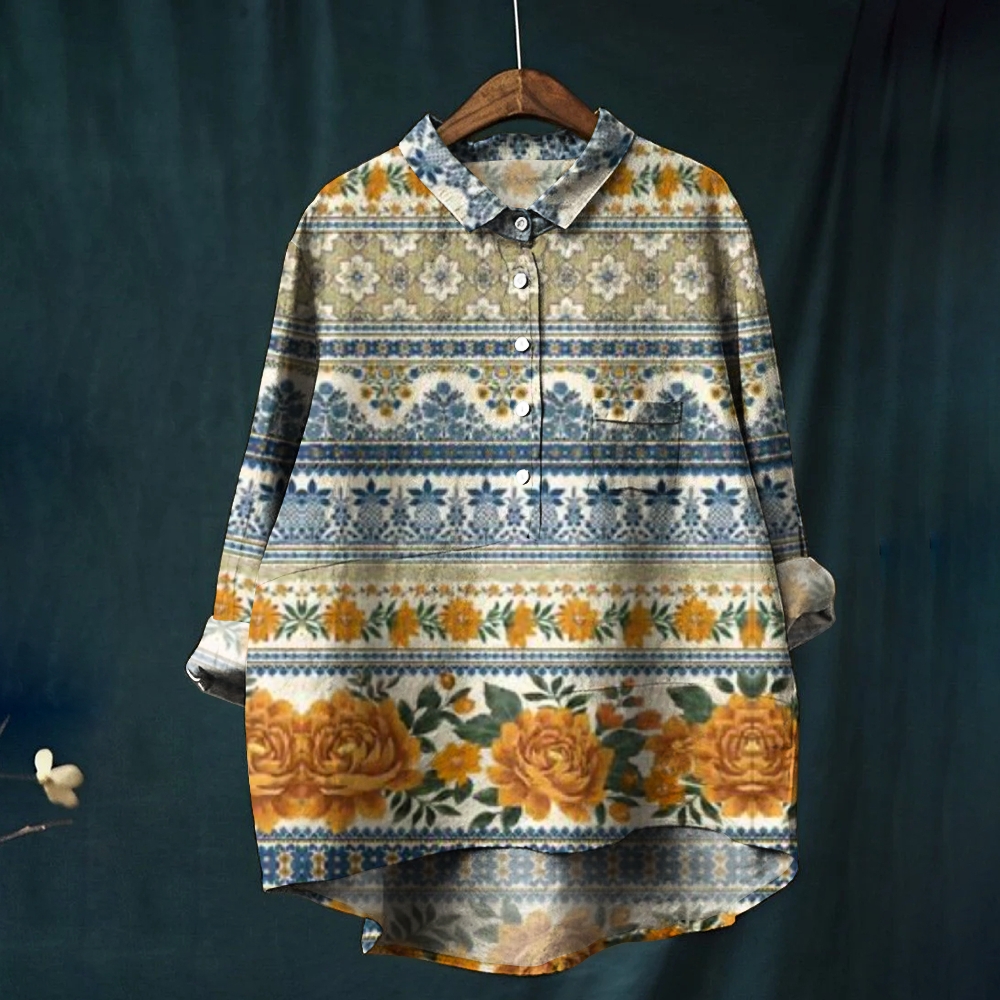 Women's Retro Ethnic Pattern Printed Casual Long Sleeve Shirt