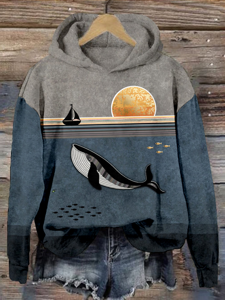 Whale & Boat Art Graphic Vintage Comfy Hoodie
