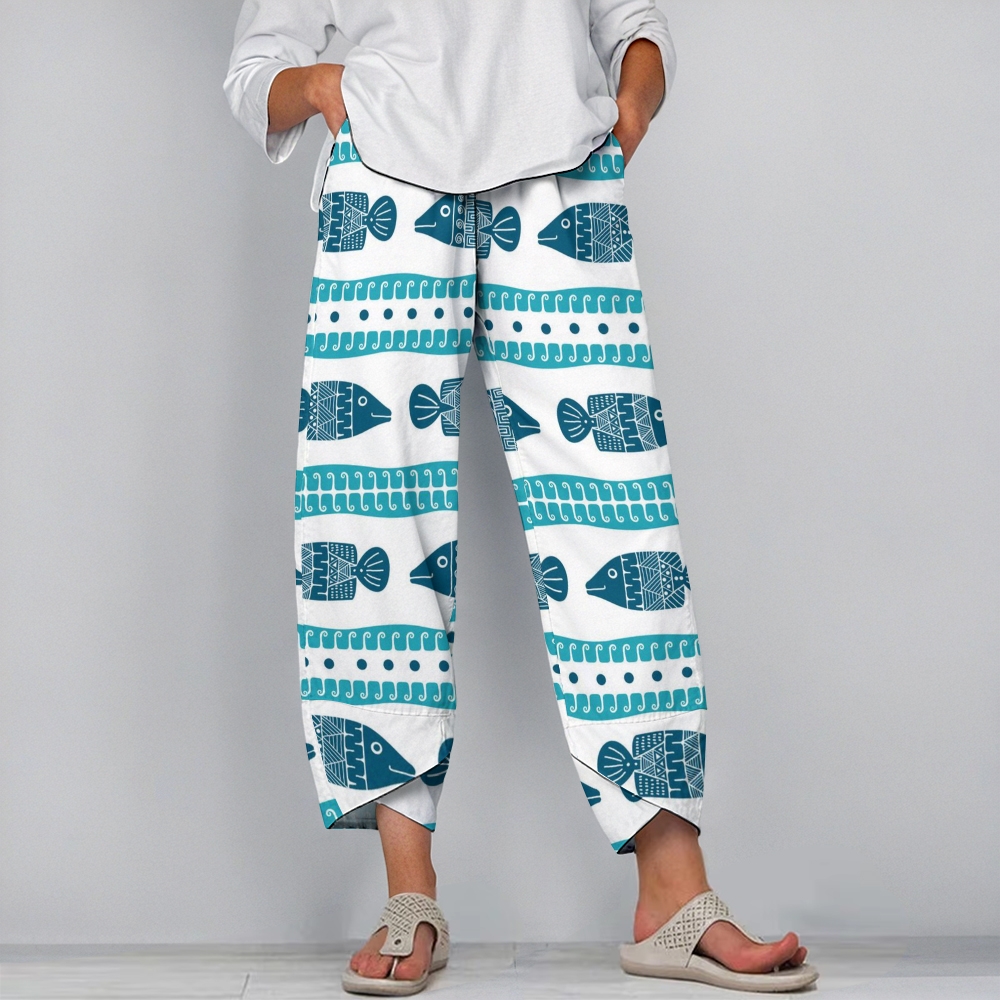 Women's Casual Vintage Geometric Fish Printed Pants