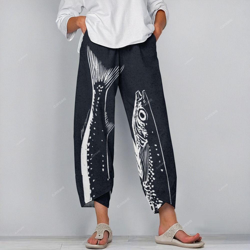 Women's Casual Sardines Printed Pants