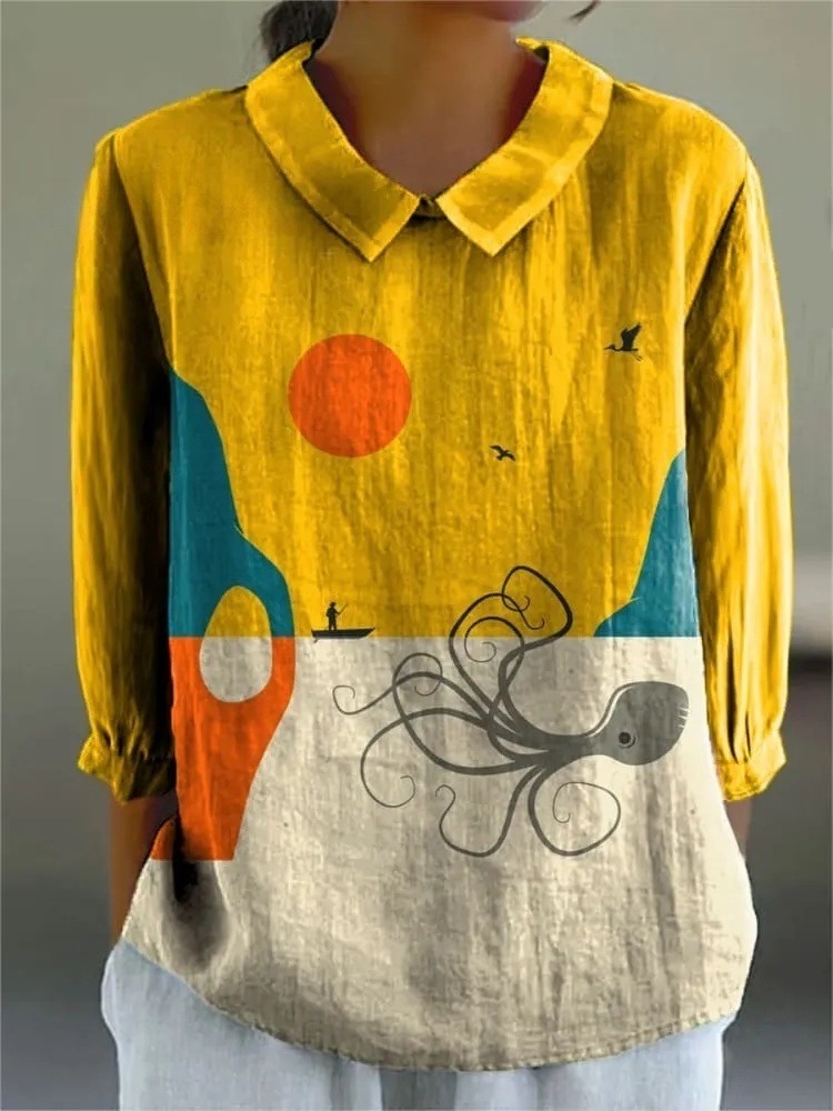 Women's Simple Octopus Art Print Casual 3/4 Sleeve Shirt