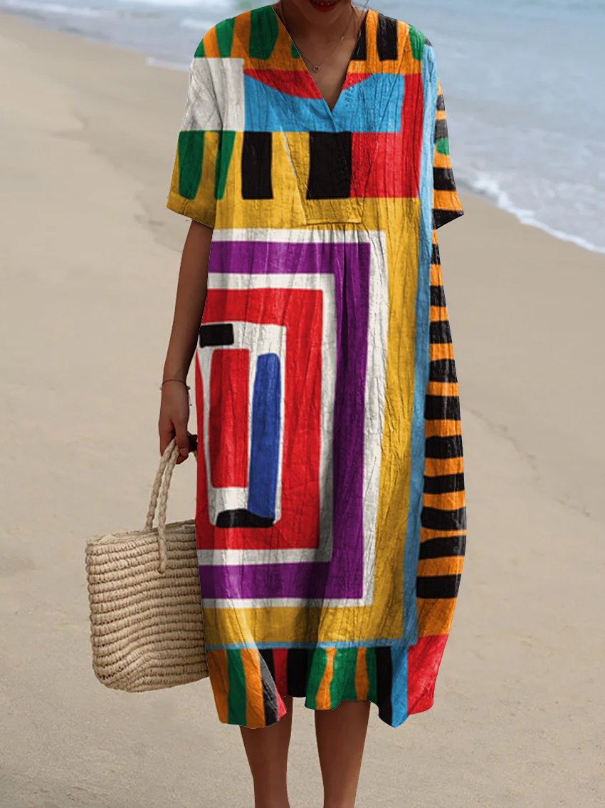Women's Abstract Geometry Watercolor Splash Fluid Art Print Flowy Dress