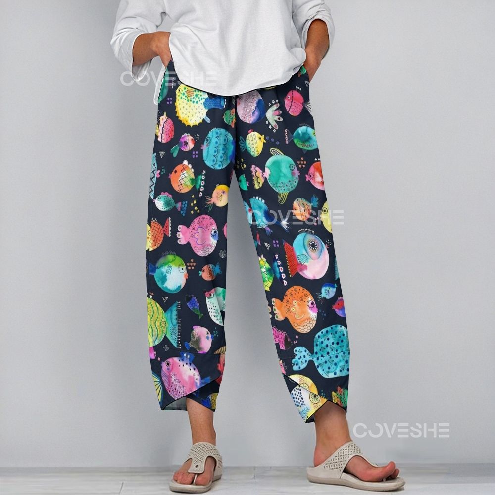 Women's Casual Colorful Fish Printed Pants