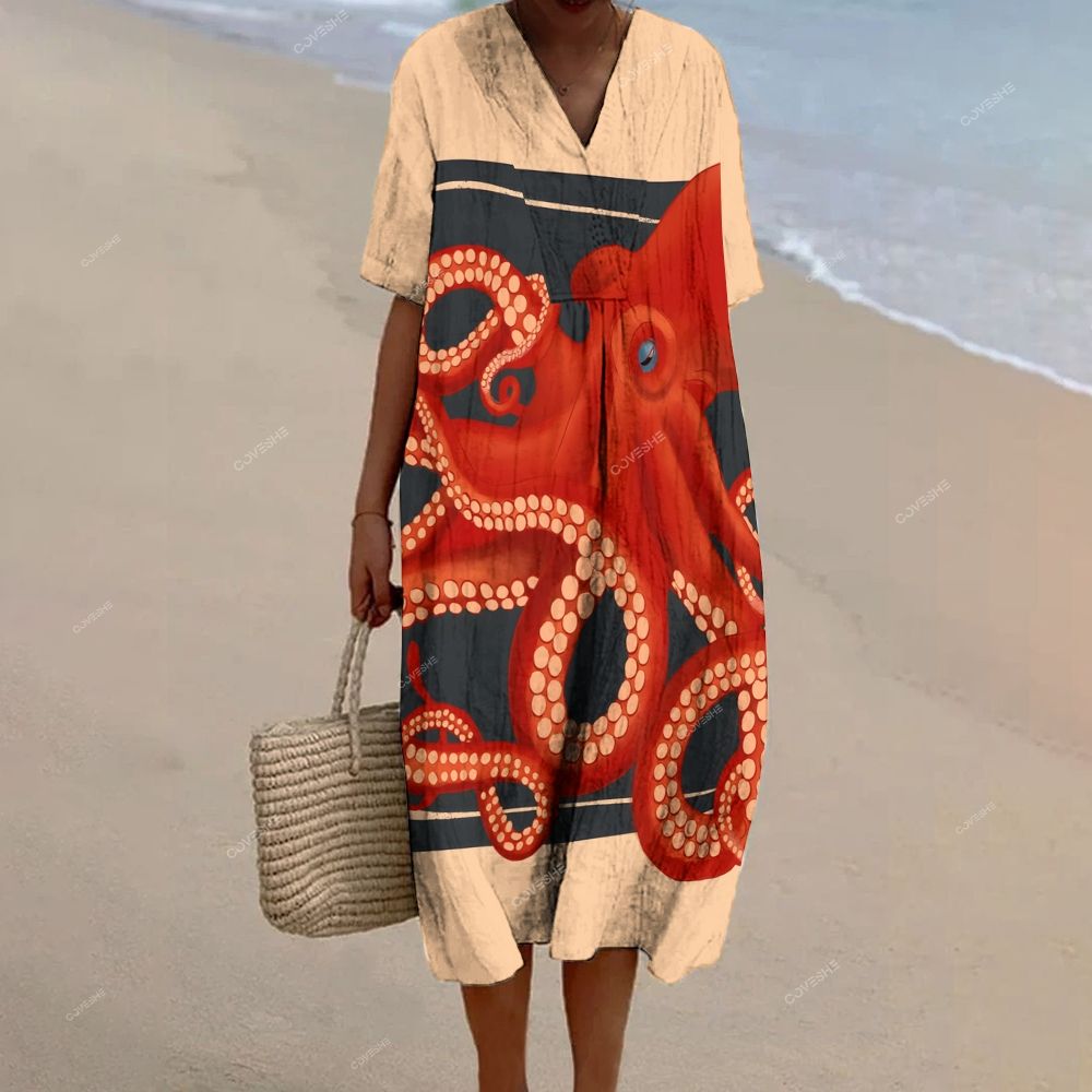 Women's Cartoon Octopus Printed Flowy Dress