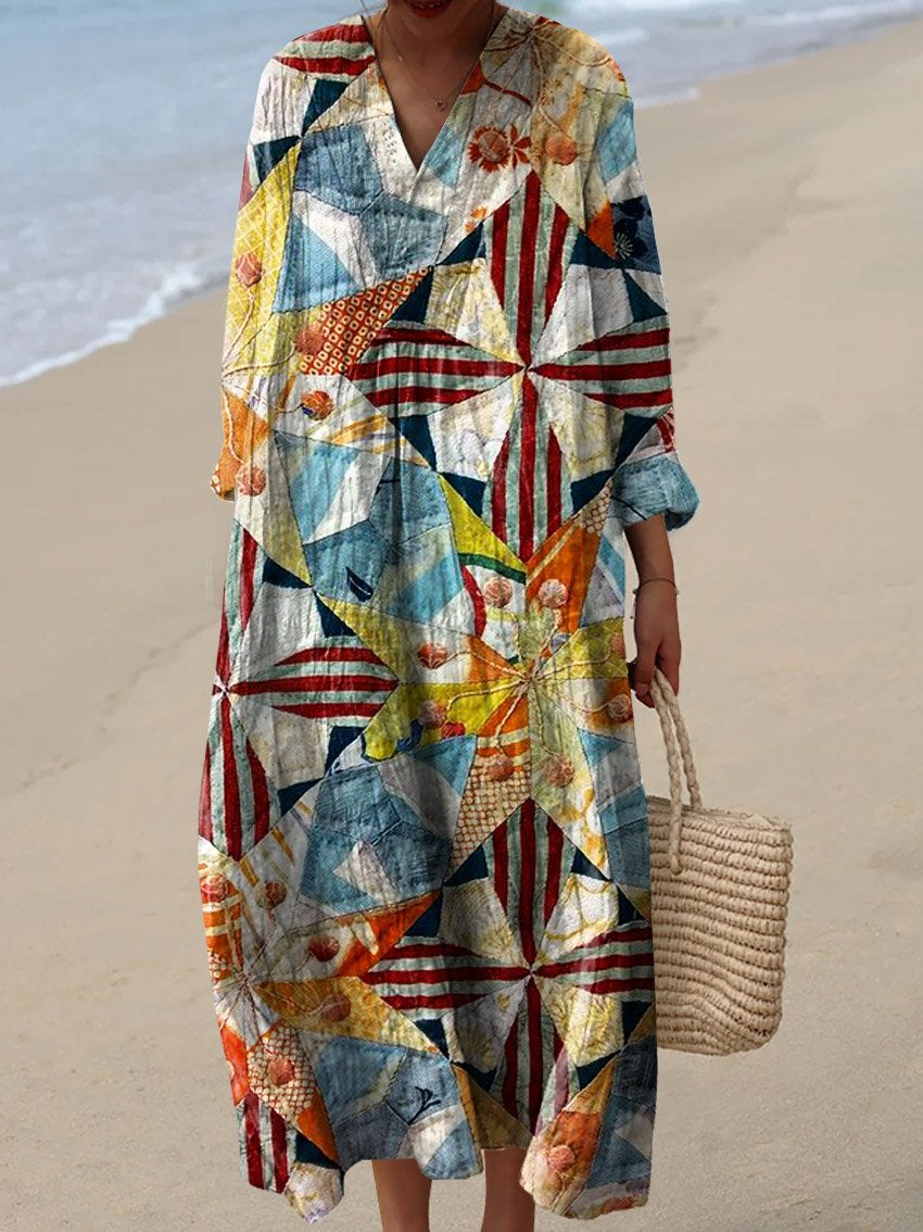 Women's Geometric Flower Printed Maxi Dress
