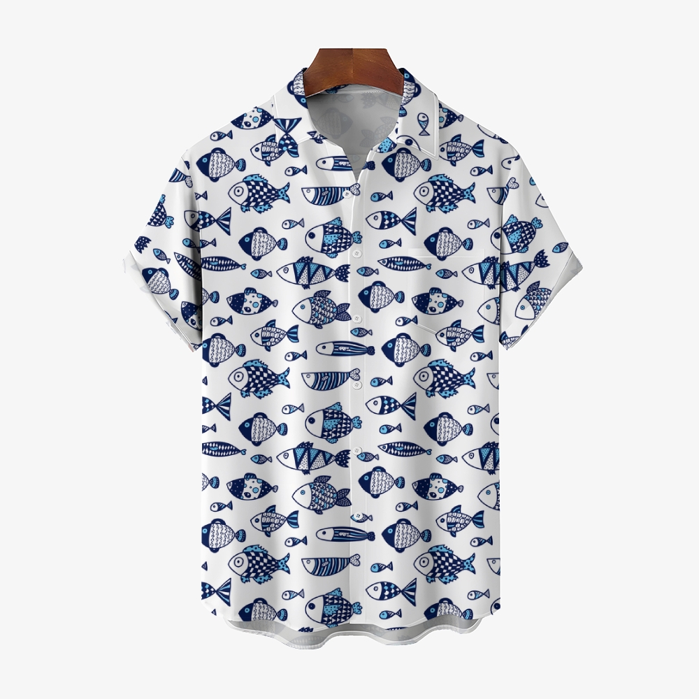 Men's Geometric Fish Print Hawaiian Casual Short Sleeve Shirt 2406001971