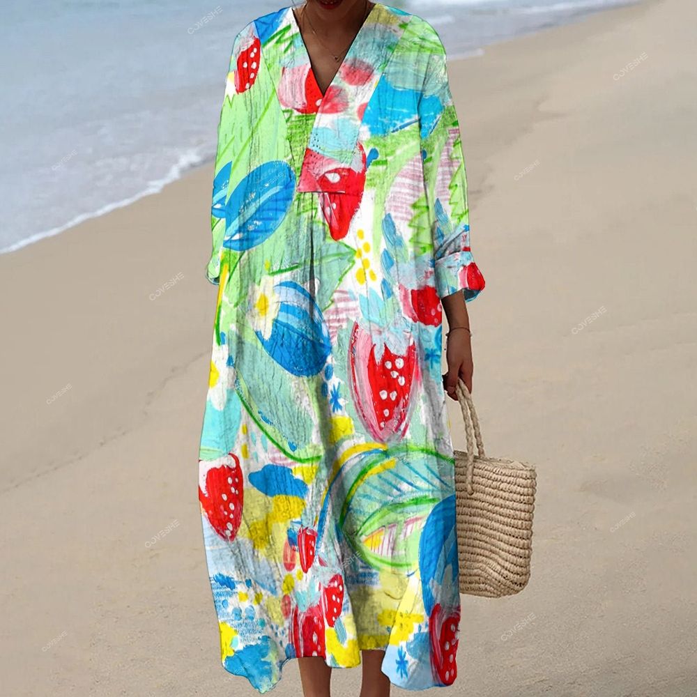 Women's Strawberry Printed Maxi Dress