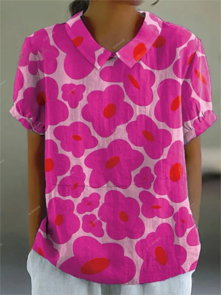 Vibrant Pink Floral Pattern Printed Women's Casual Shirt