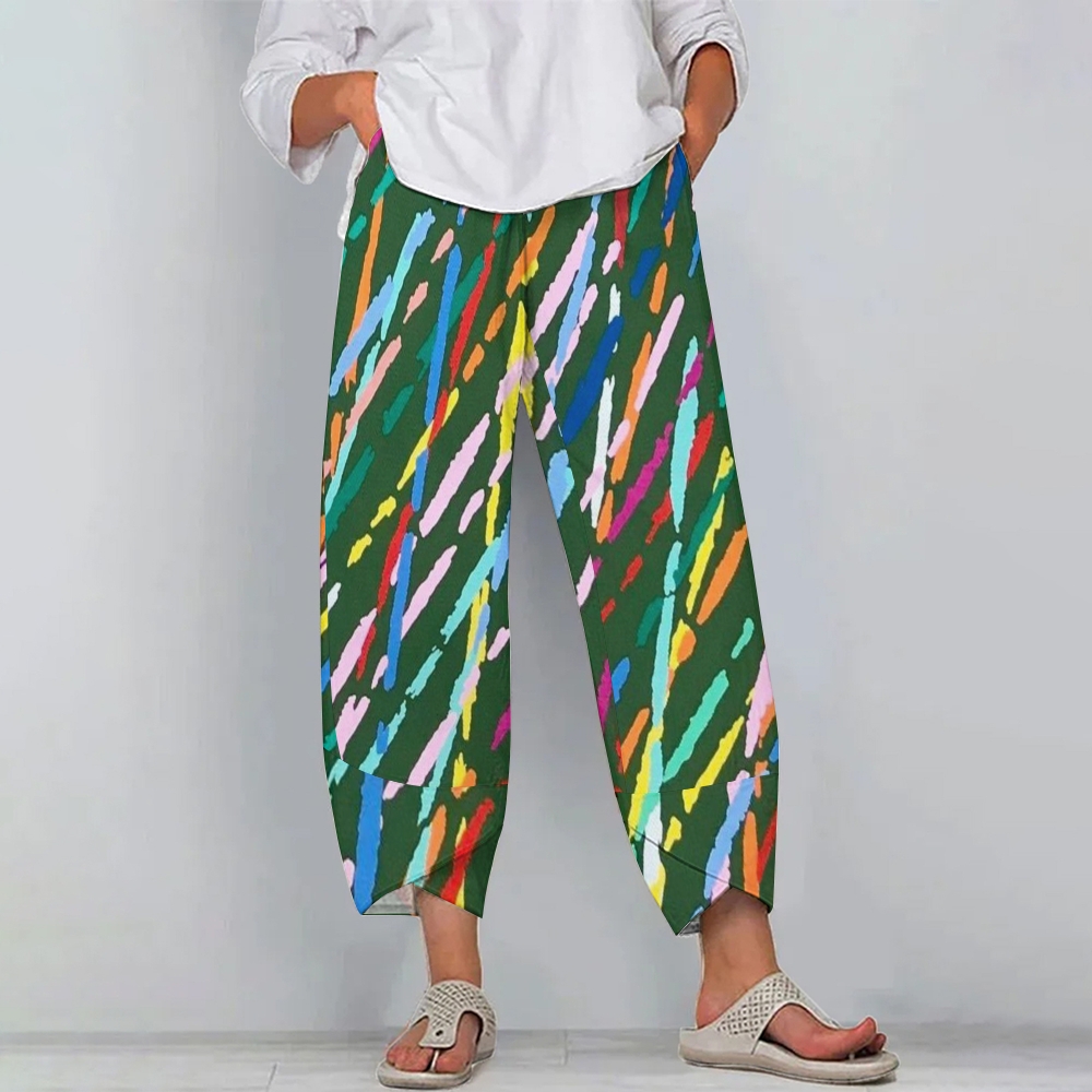 Women's Casual Colored Lines Printed Pants
