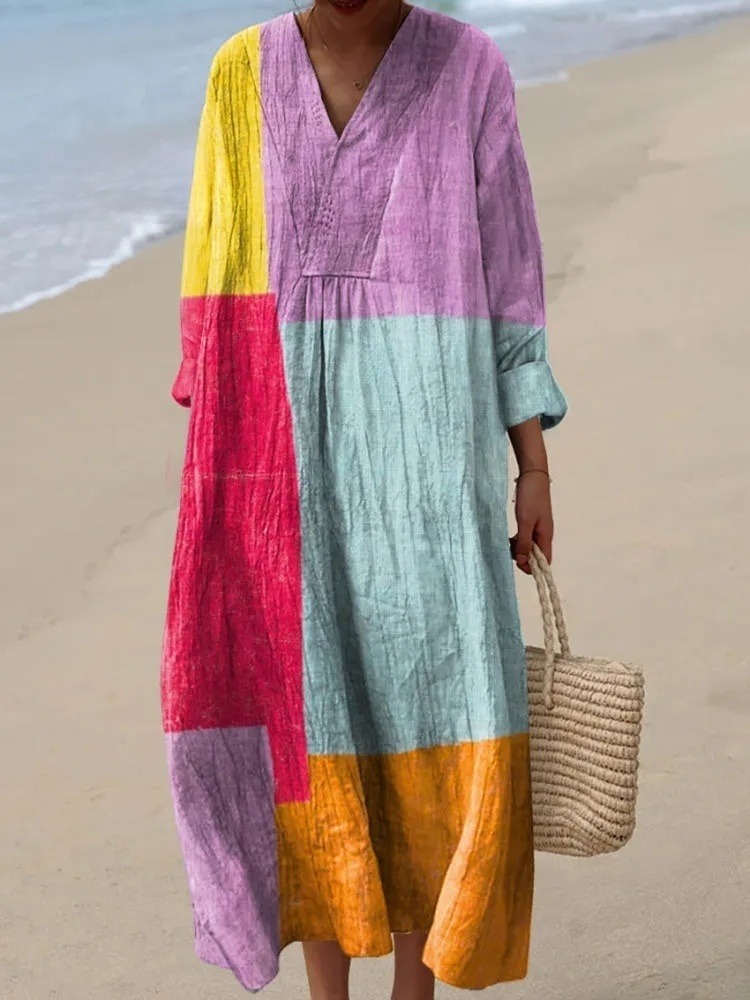Women's Colorful Geometric Fish Printed Flowy Dress