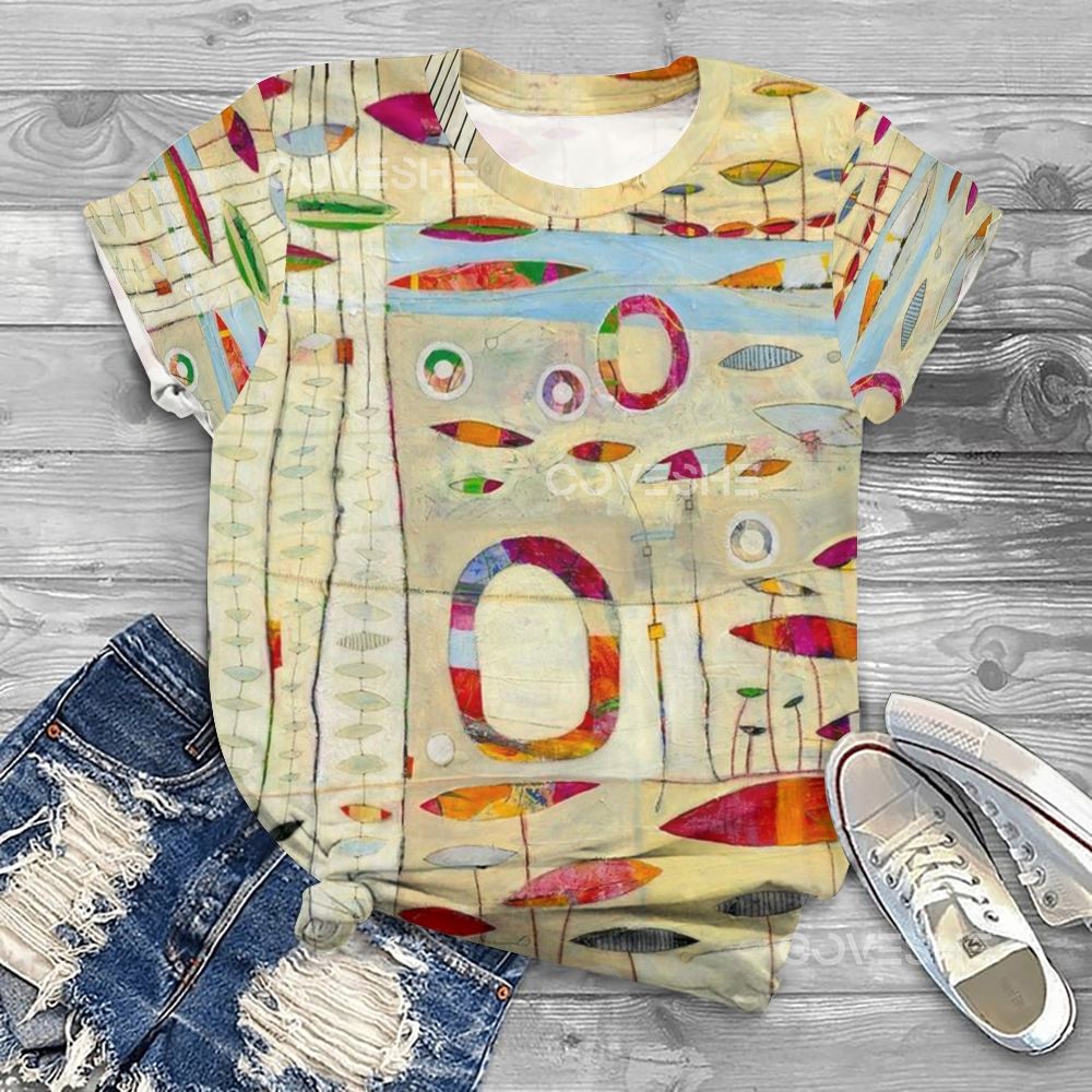 Women's Abstract Art Geometry Printed Round Neck T-Shirt