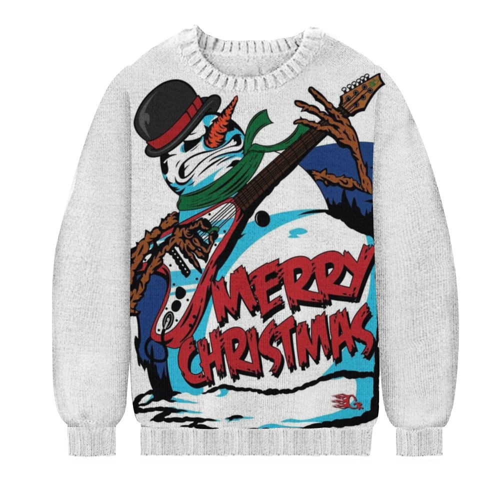 Merry Christmas Rock Snowman Casual Knit Crew Neck Sweater