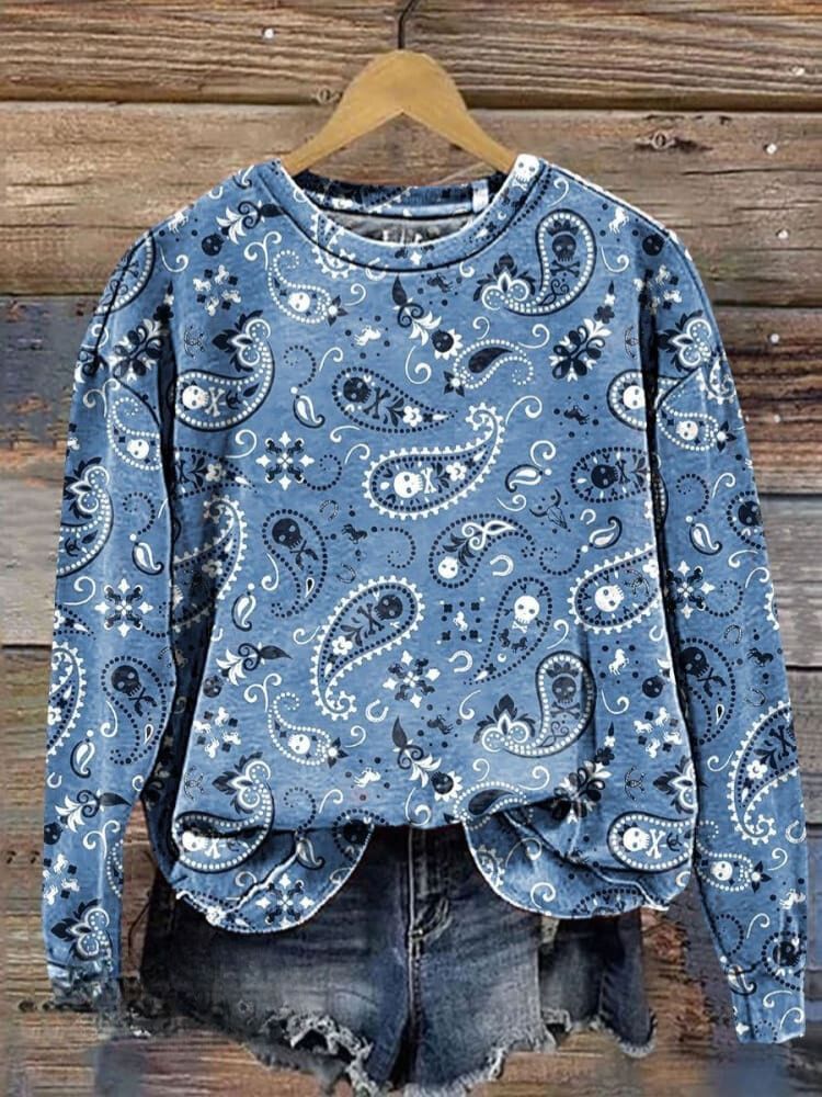 Skull and Paisley Art Print Casual Sweatshirt