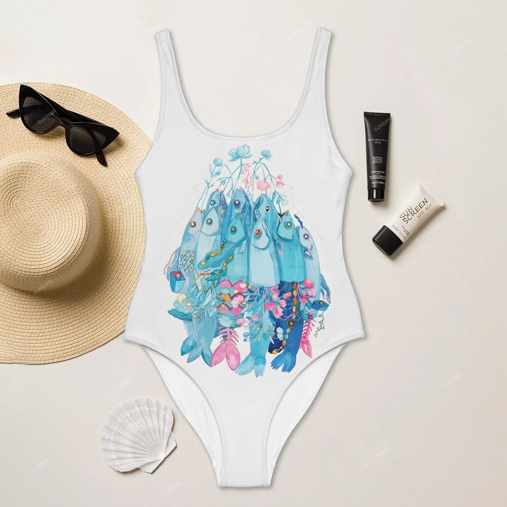 Colorful Wavy Fish Print One-Piece Swimsuit