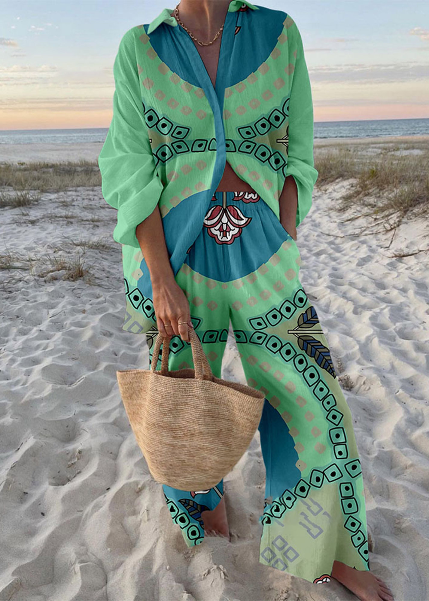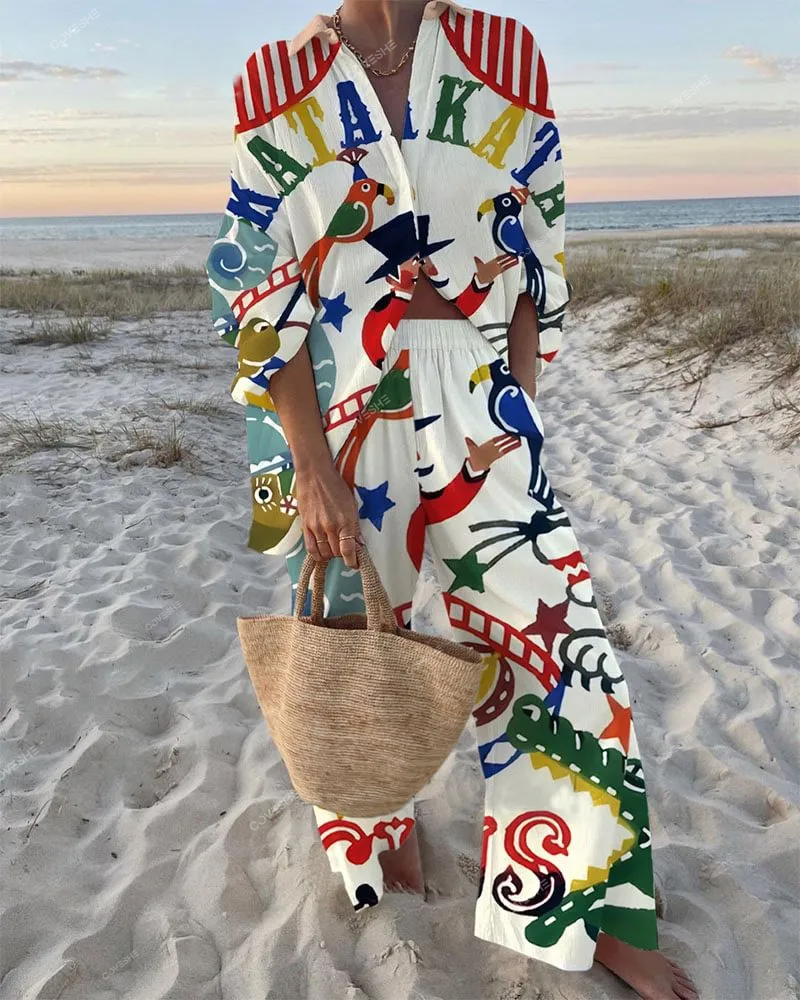 Women's Art Geometric Eyes Print Casual Two-Piece Set