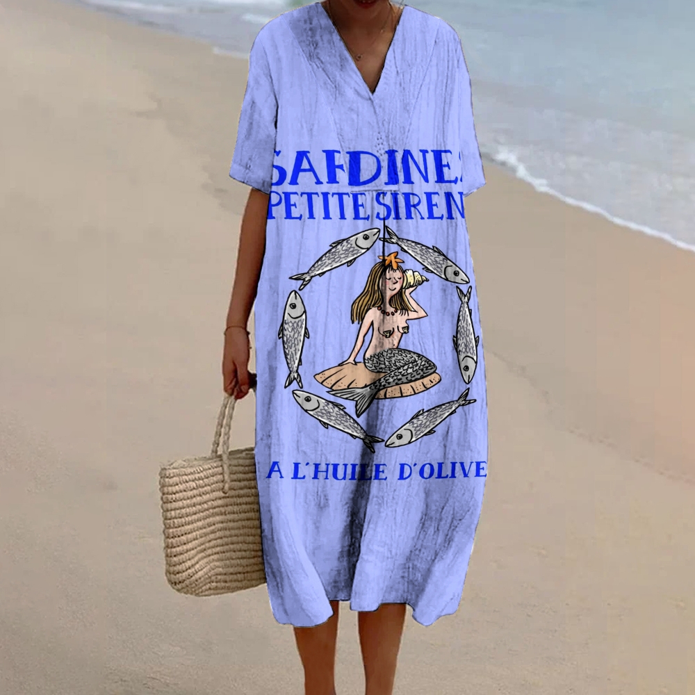 Women's Sardine Mermaid Print Flowy Dress