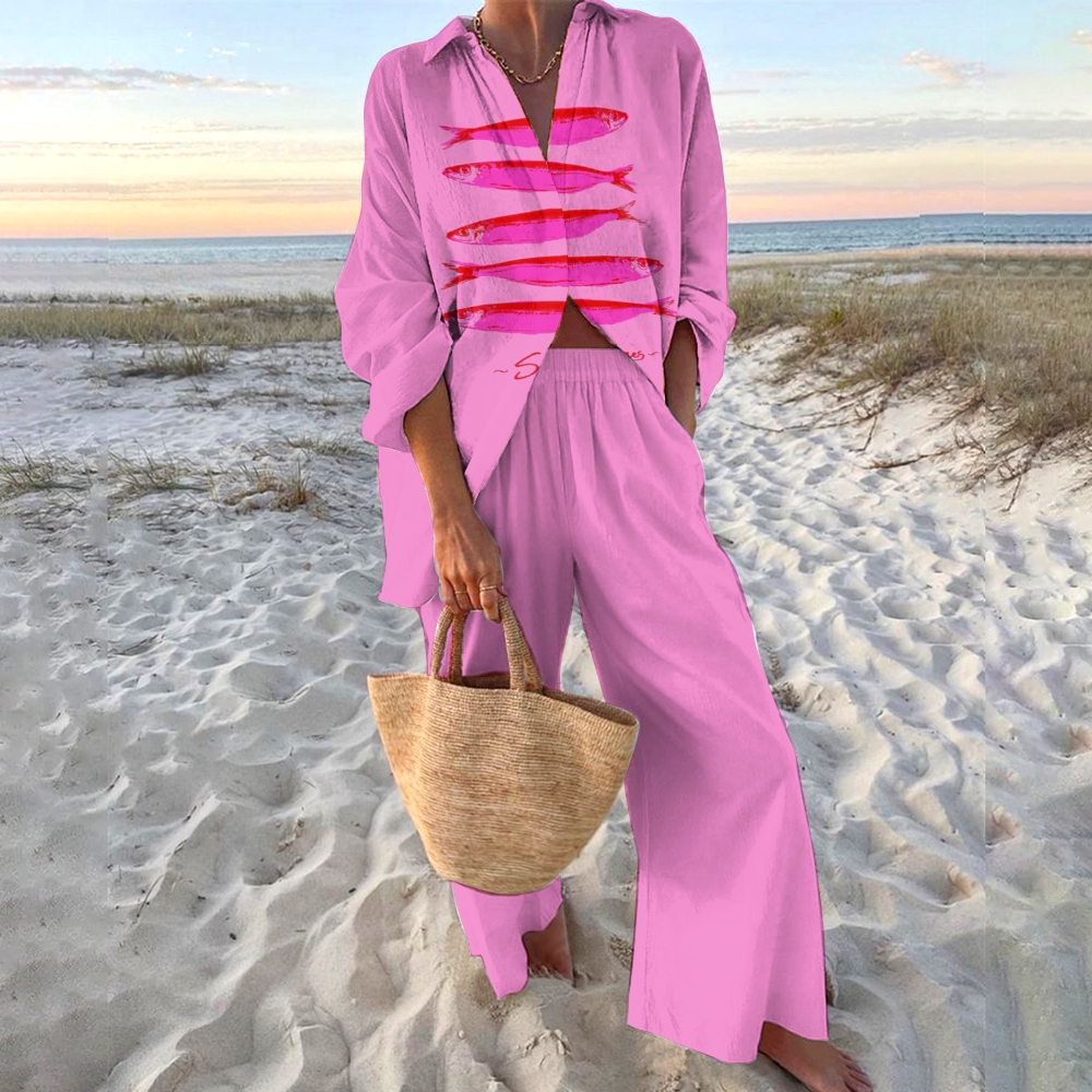 Women's Sardines Printed Shirt & Pants Two-piece Set