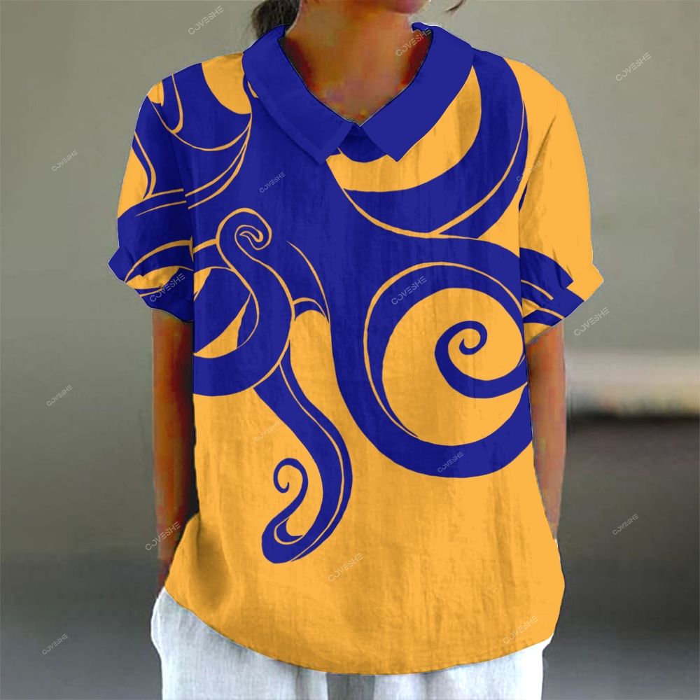 Women's Octopus Casual Printed Short Sleeve Shirt
