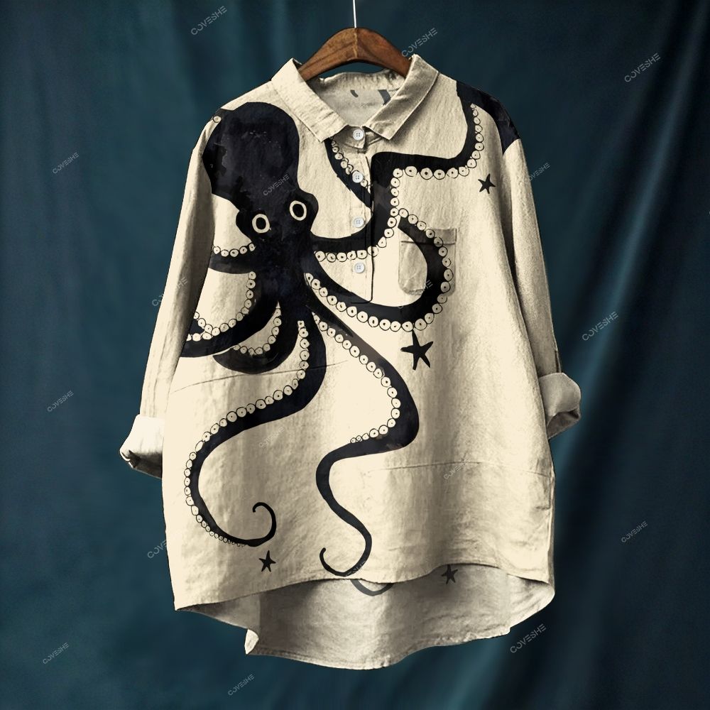Women's Octopus Printed Casual Long Sleeve Shirt