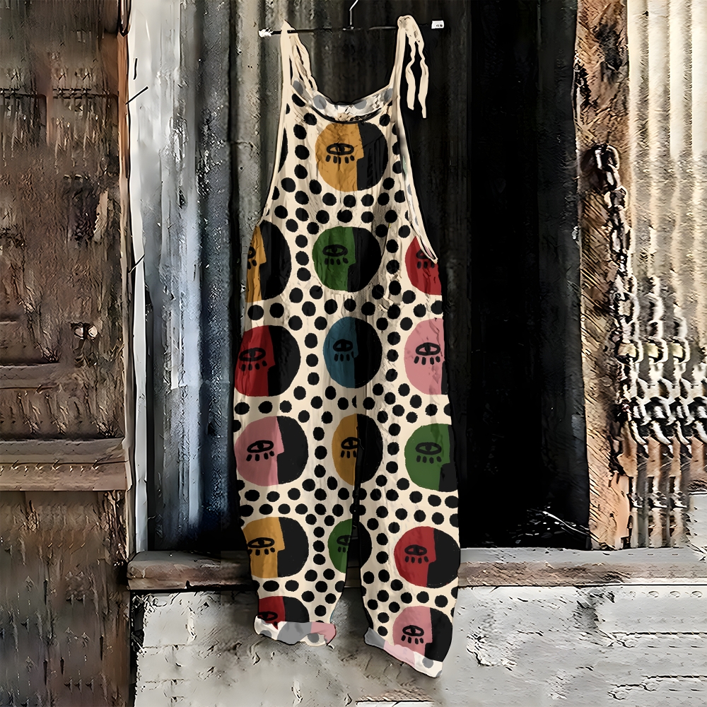 Women's Casual Polka Dot Art Eyes Printed Jumpsuit