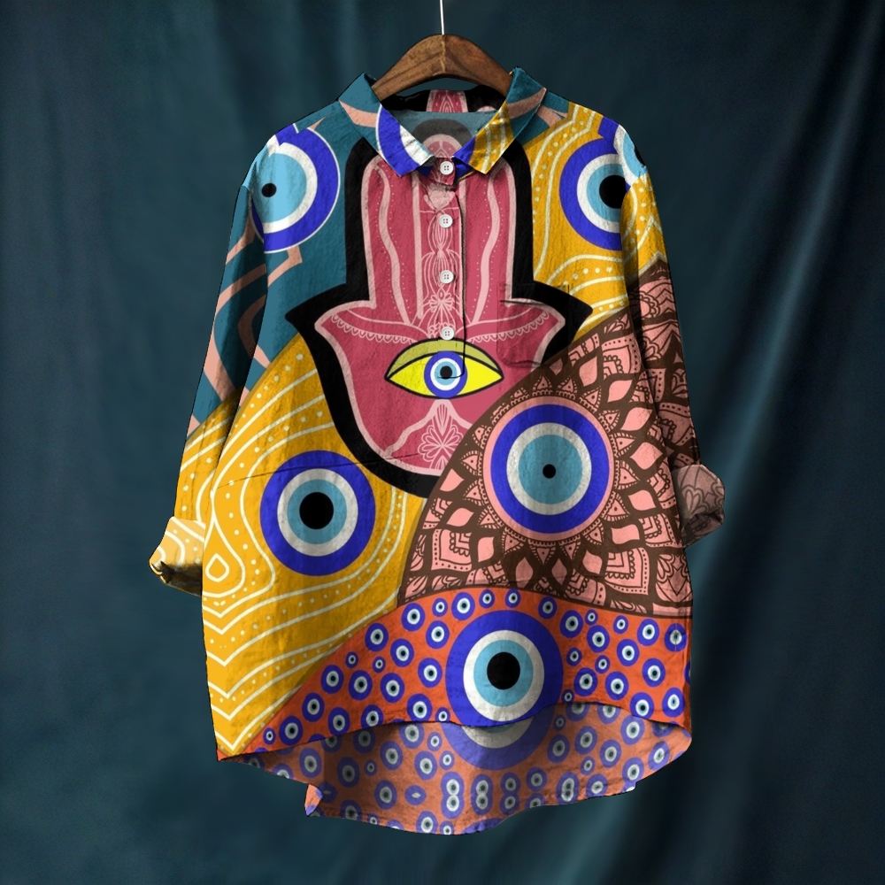 Women's Geometry Eye Colorful Printed Casual Long Sleeve Shirt