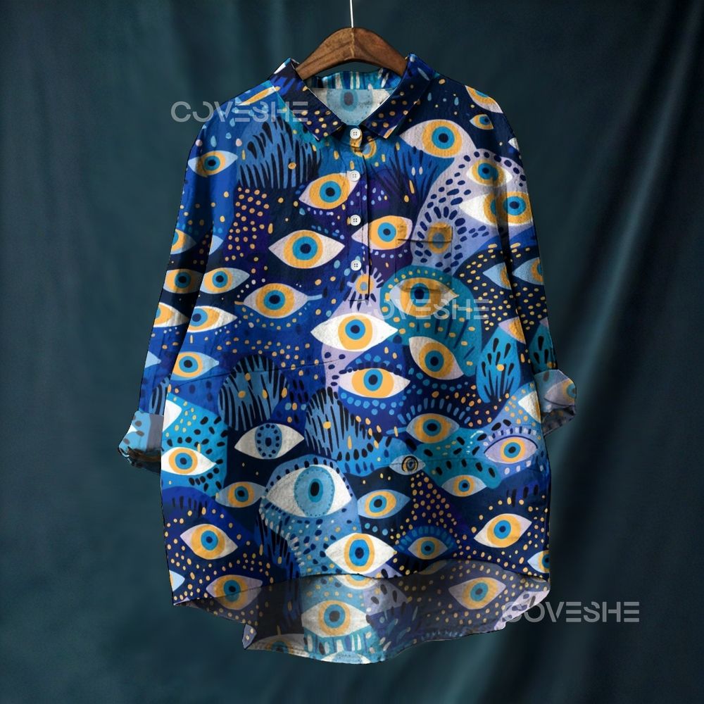 Women's Abstract Art Eyes Printed Casual Long Sleeve Shirt
