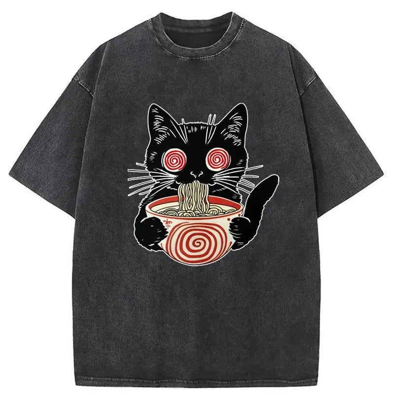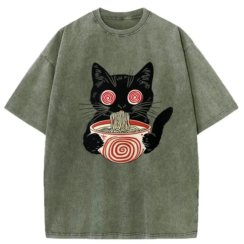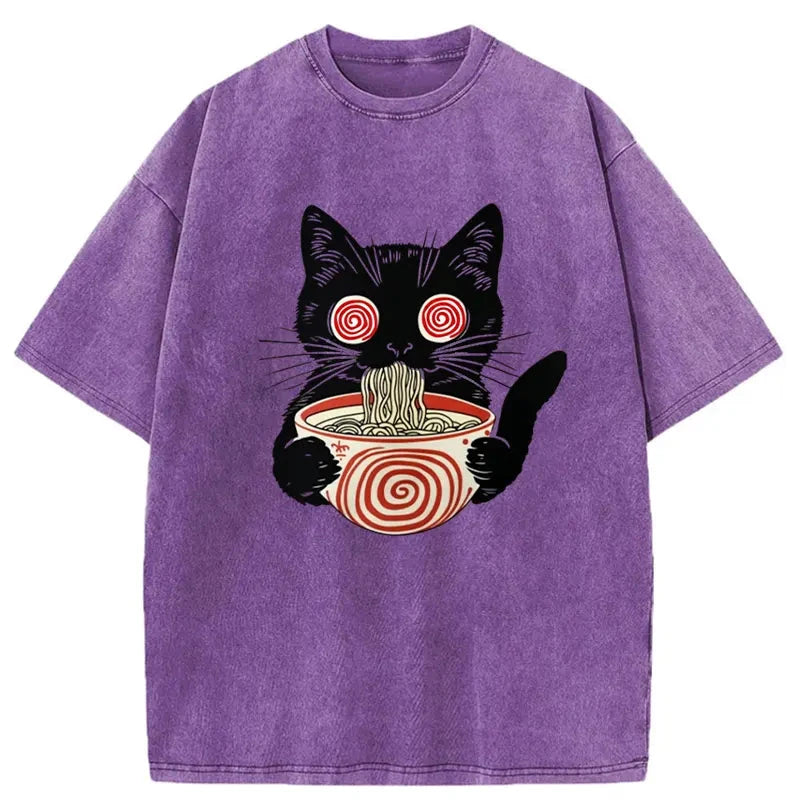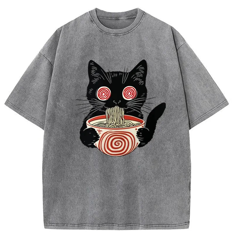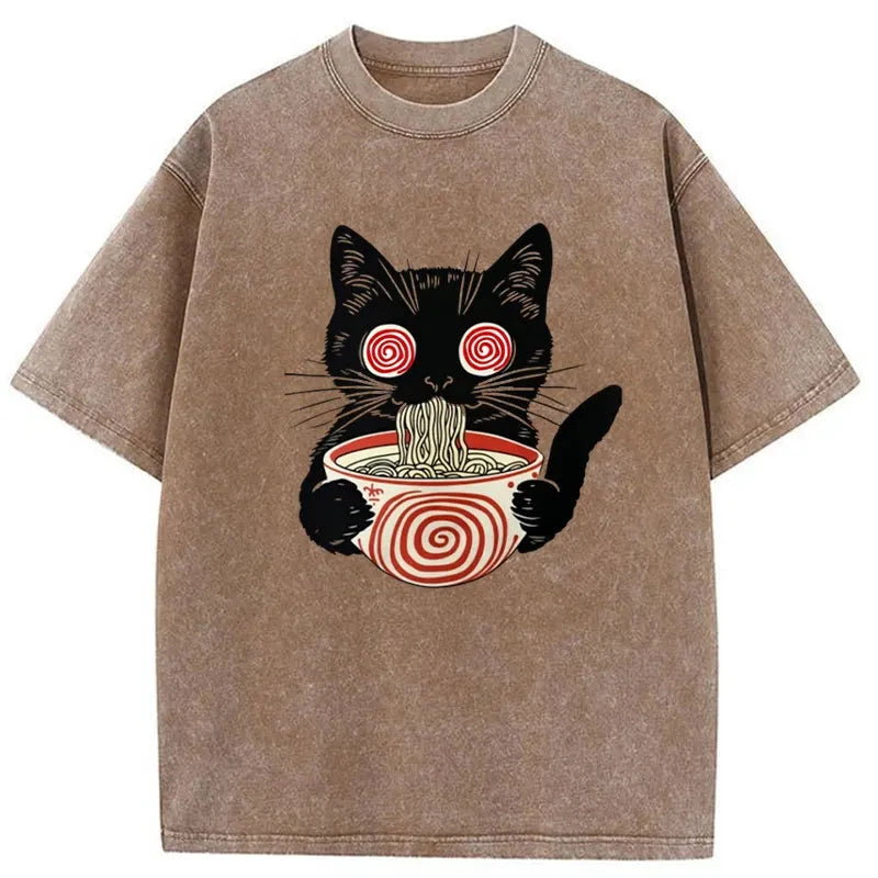 Confused Cat Eating Ramen Washed Vintage T-Shirt