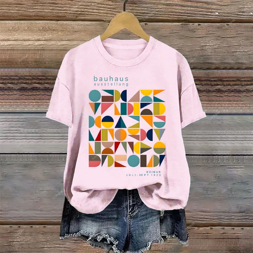 Crew Neck Colorful Geometry Printed Casual Cotton T-shirt