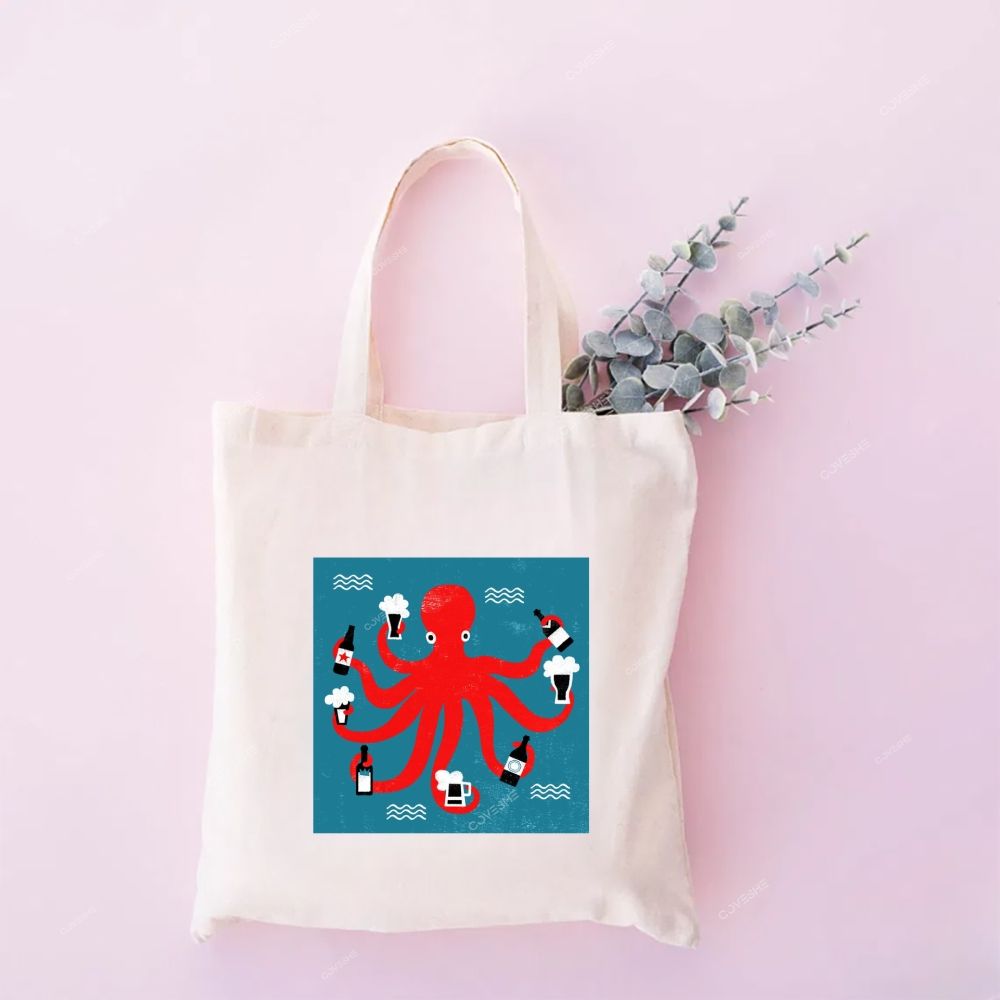 Octopus Beer Print Tote Bag