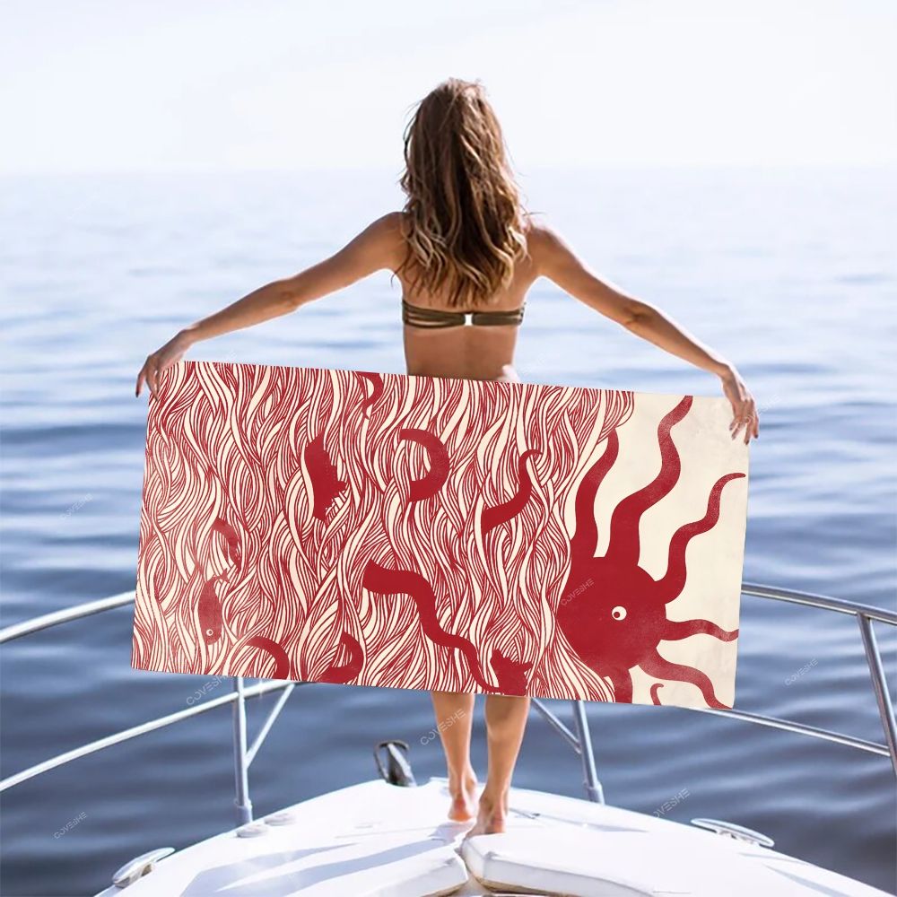Red Octopus Wave Casual Printed Beach Towel