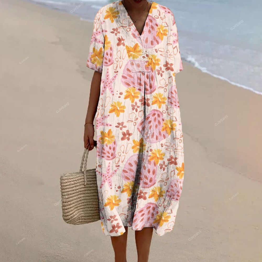 Women's Artistic Cartoon Shells Printed Flowy Dress