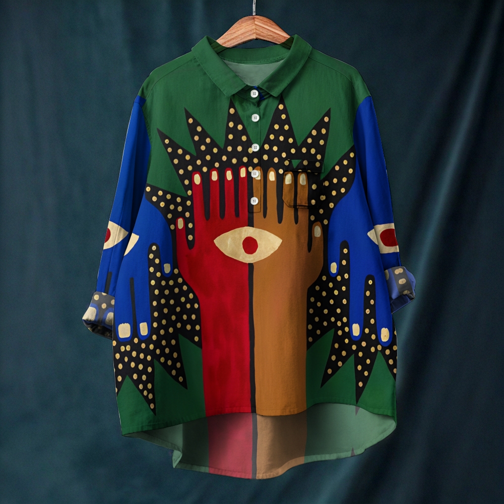 Women's Artistic Hand Eyes Printed Long Sleeve Casual Shirt