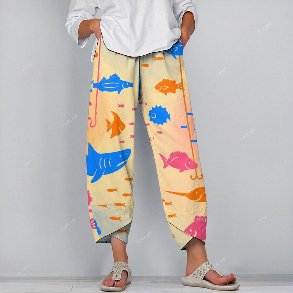 Women's Casual Colorful Shark Printed Pants