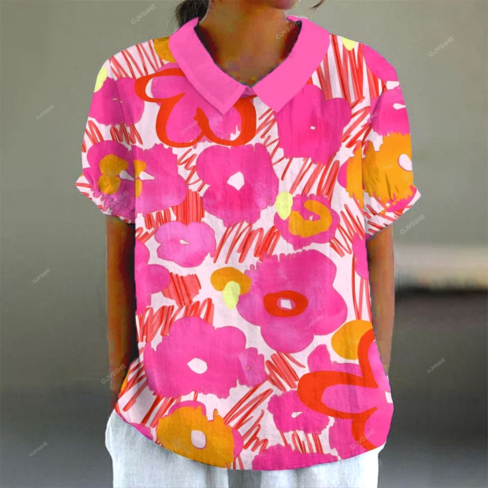 Women's Casual Flowers Printed Short Sleeve Shirt