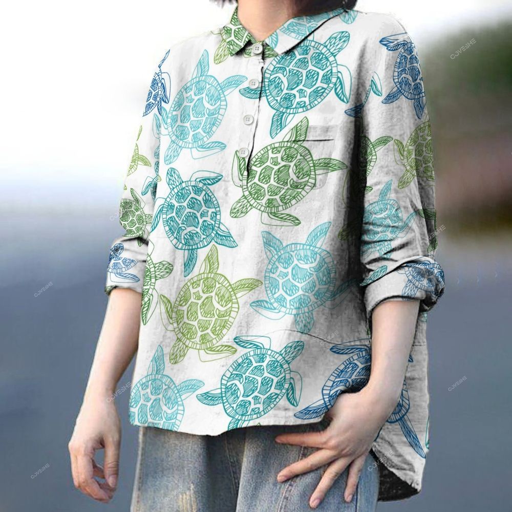 Women's Colorful Turtle Printed Casual Long Sleeve Shirt
