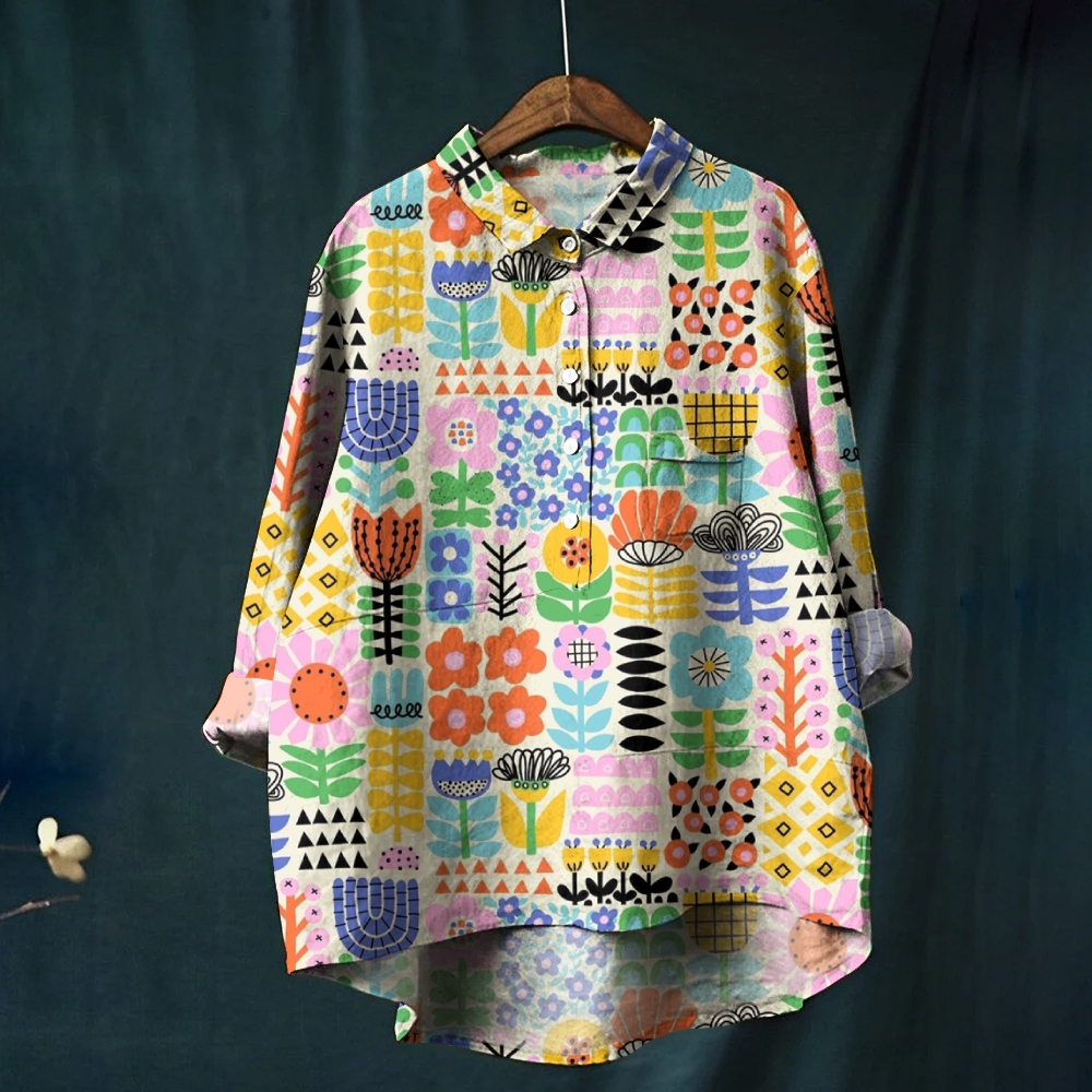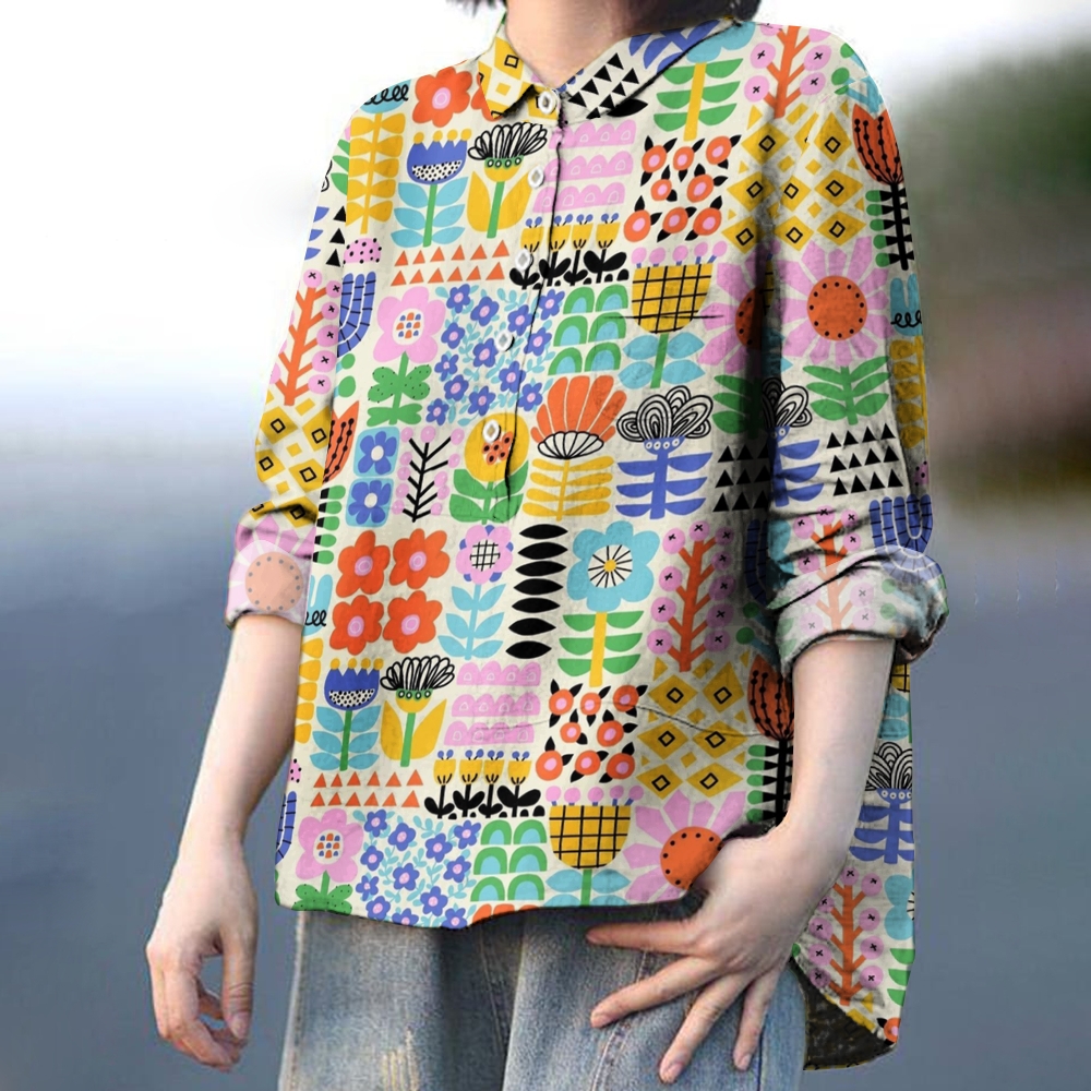 Women's Geometric Flowers Printed Casual Shirt