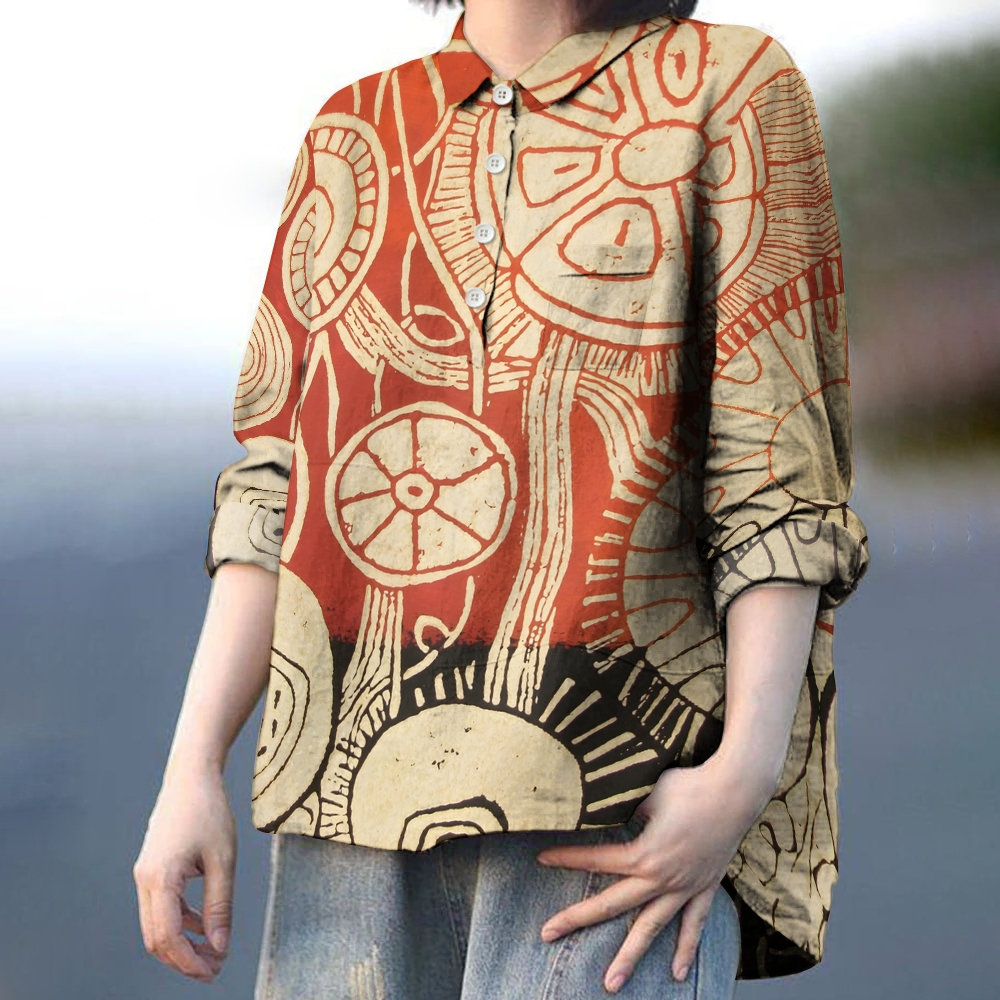 Women's Japanese Style Flower Printed Casual Long Sleeve Shirt