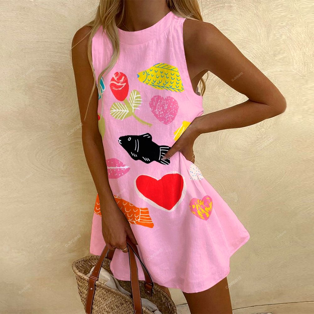 Women's Sleeveless Cartoon Fish Heart Printed Dress