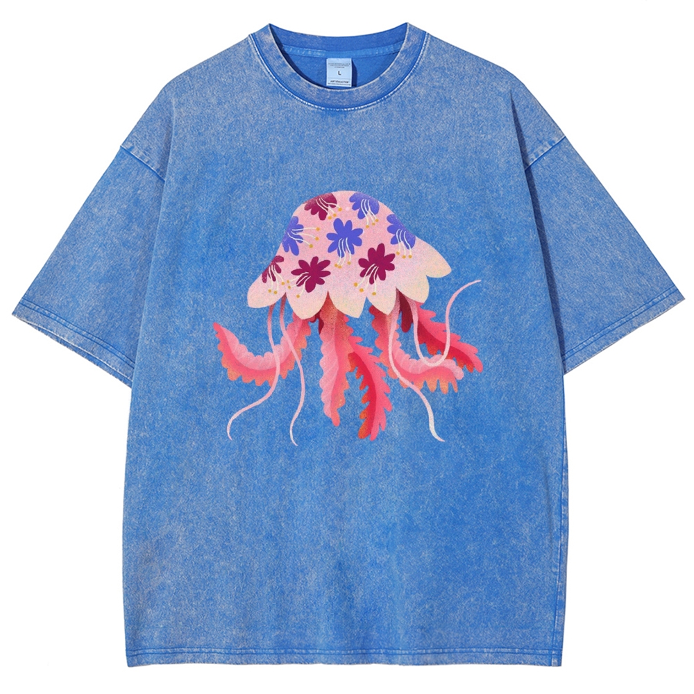 Women's Smart Jellyfish Unisex Printed Washed Tee