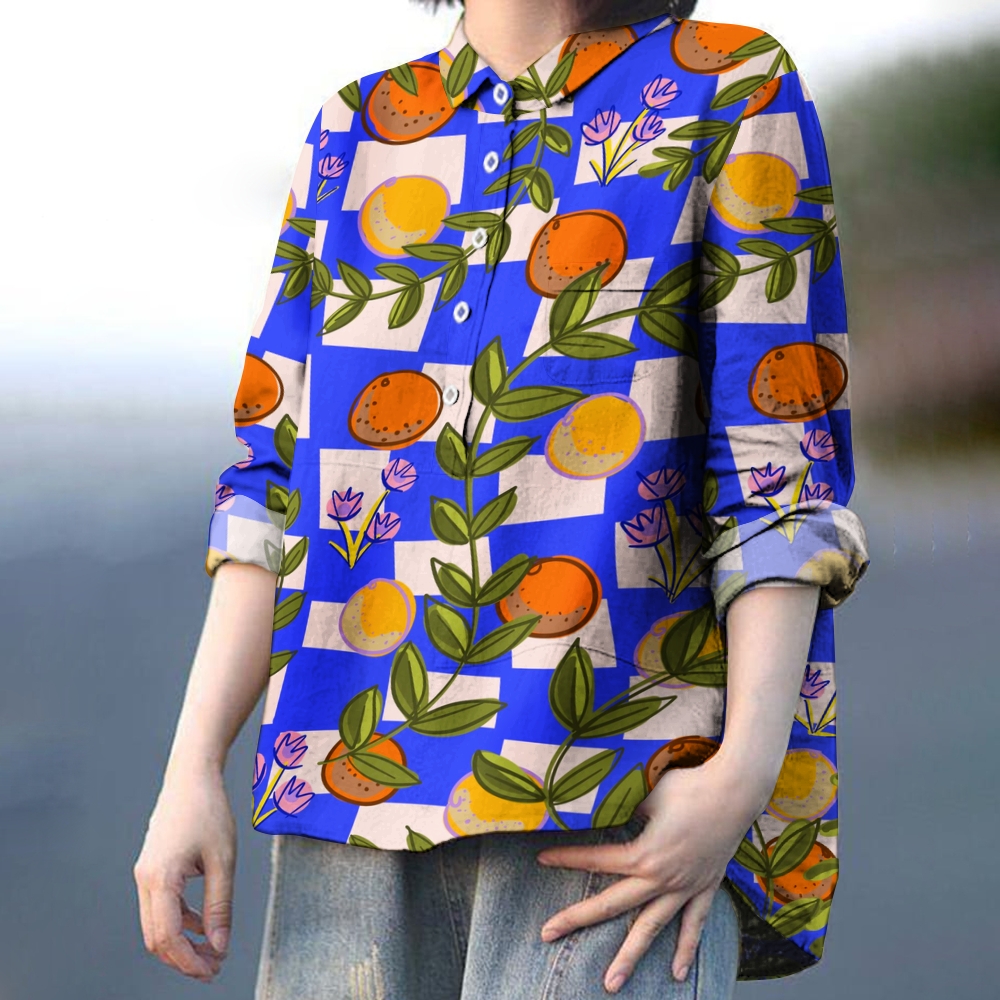 Women's Square Fruits Printed Casual Shirt