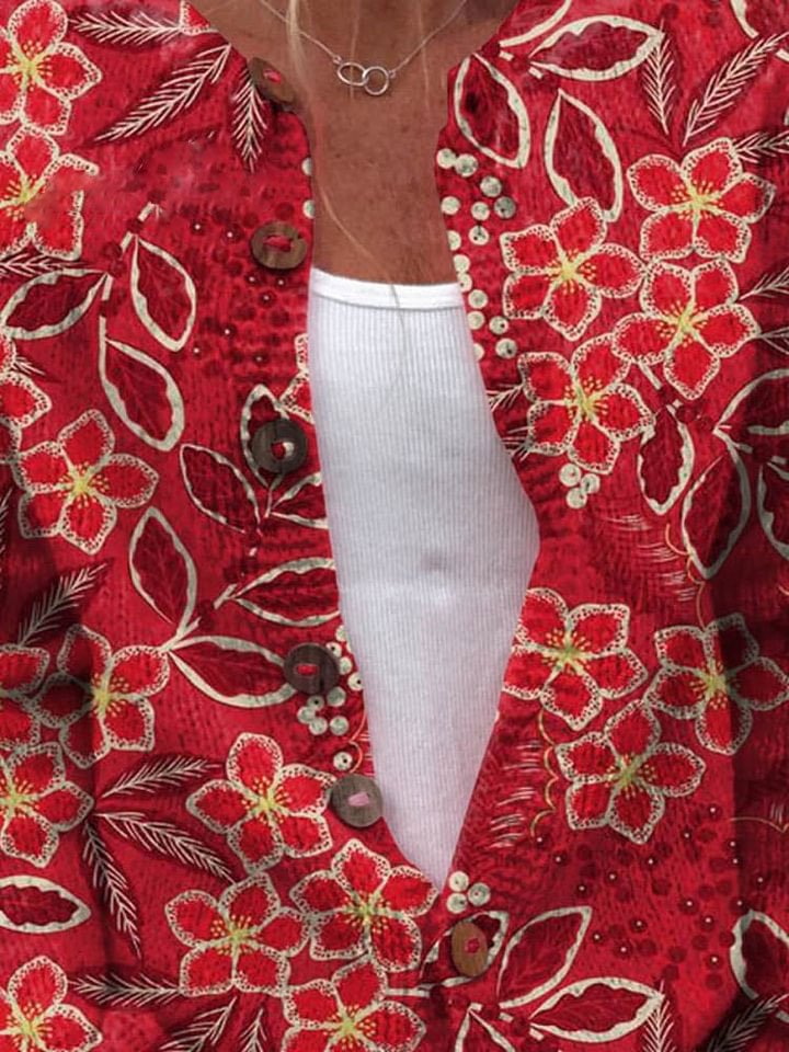Women's Vintage Lovely Floral Art Print Buttoned Cardigan Sweater