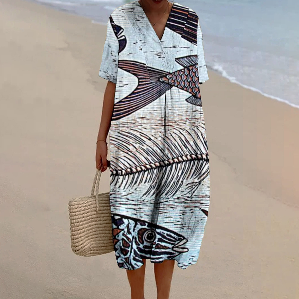 Women's Fish Art Print Flowy Dress